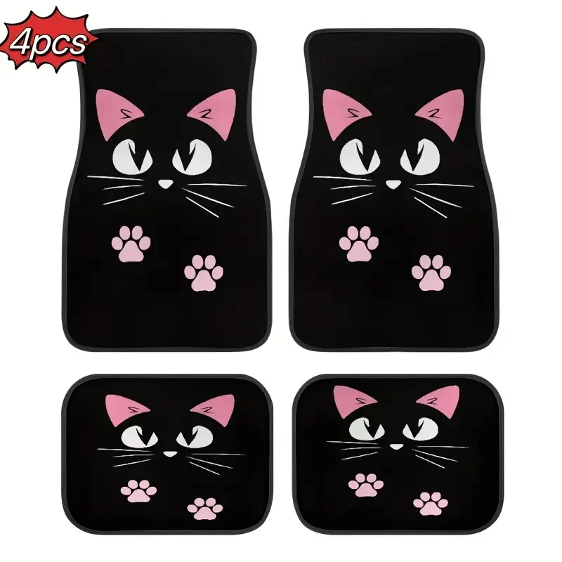 4 قطع سيارة ريترو كارتون كات أسود الشمال طاحونة السجاد أربع قطع المضادة للحشف الكلمة حصيرة